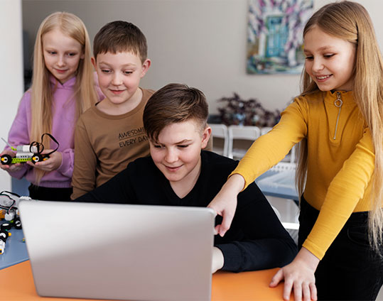 info@adropedu.comOur K–12 coding curriculum equips students with future-ready skills in algorithms, 3D design, virtual reality, metaverse development, and robotics. The program blends creative coding with real-world problem-solving, moving beyond memorization to innovation. Students explore algorithms to understand how AI and automation work, build 3D projects to sharpen design thinking, and step into immersive VR and metaverse experiences for interactive learning. Robotics adds a hands-on dimension, linking digital code to physical movement. Schools and institutions gain access to a safe, engaging platform, teacher training, and structured lesson plans that support personalized learning. This service fosters creativity, collaboration, and computational thinking, preparing every child to thrive in the digital future.